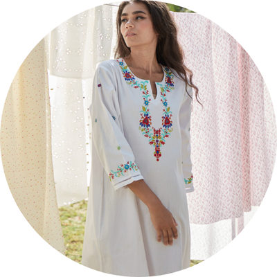 We create embroidered heirloom nighties, monogrammable home dresses, and retro-inspired silhouettes — to celebrate identity, nostalgia, and emotional comfort.