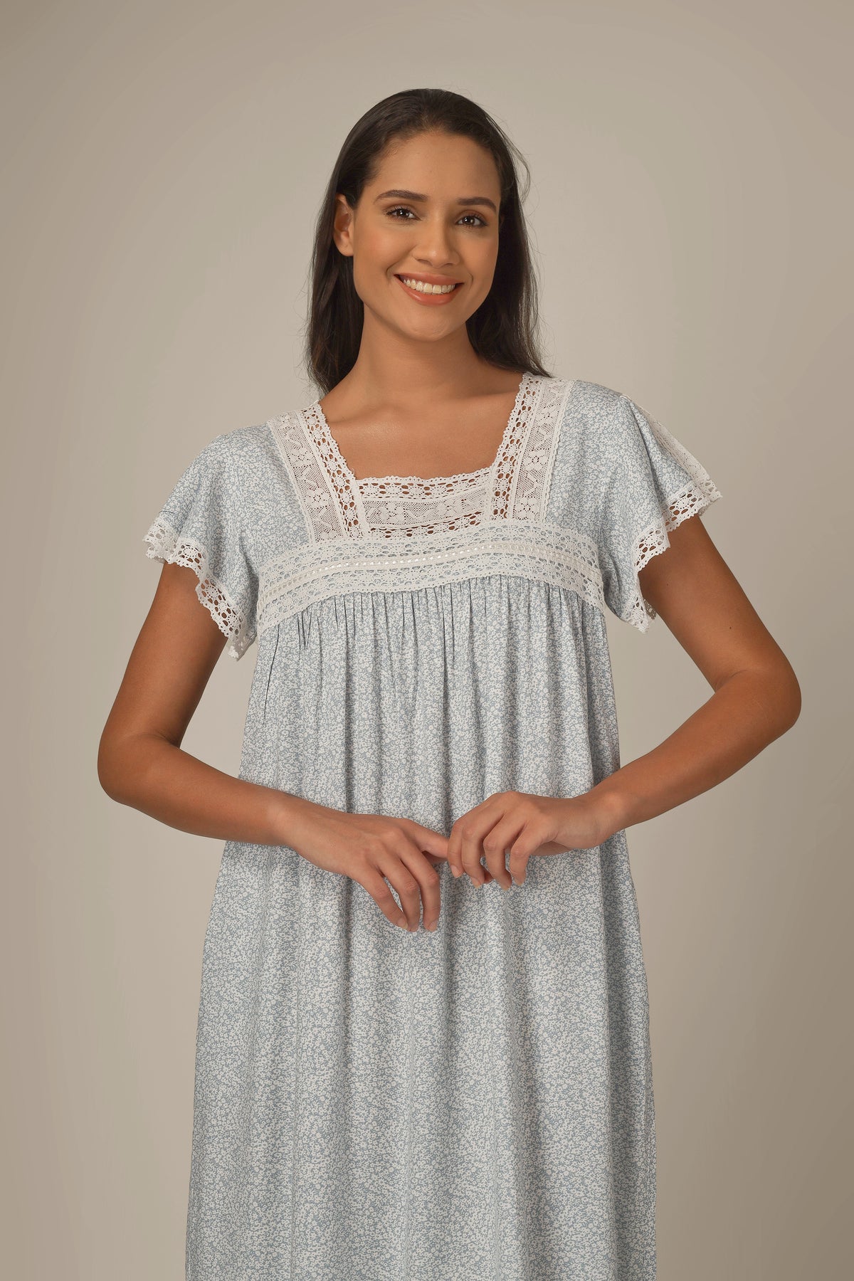 • The dress has crochet lace on sleeves and neck