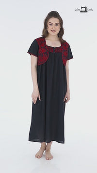 Bolero is a black cotton dress with contrast dori embroidery. It is paired with a short bolero, also fully embroidered by hand. Made in India, with lots of love.
