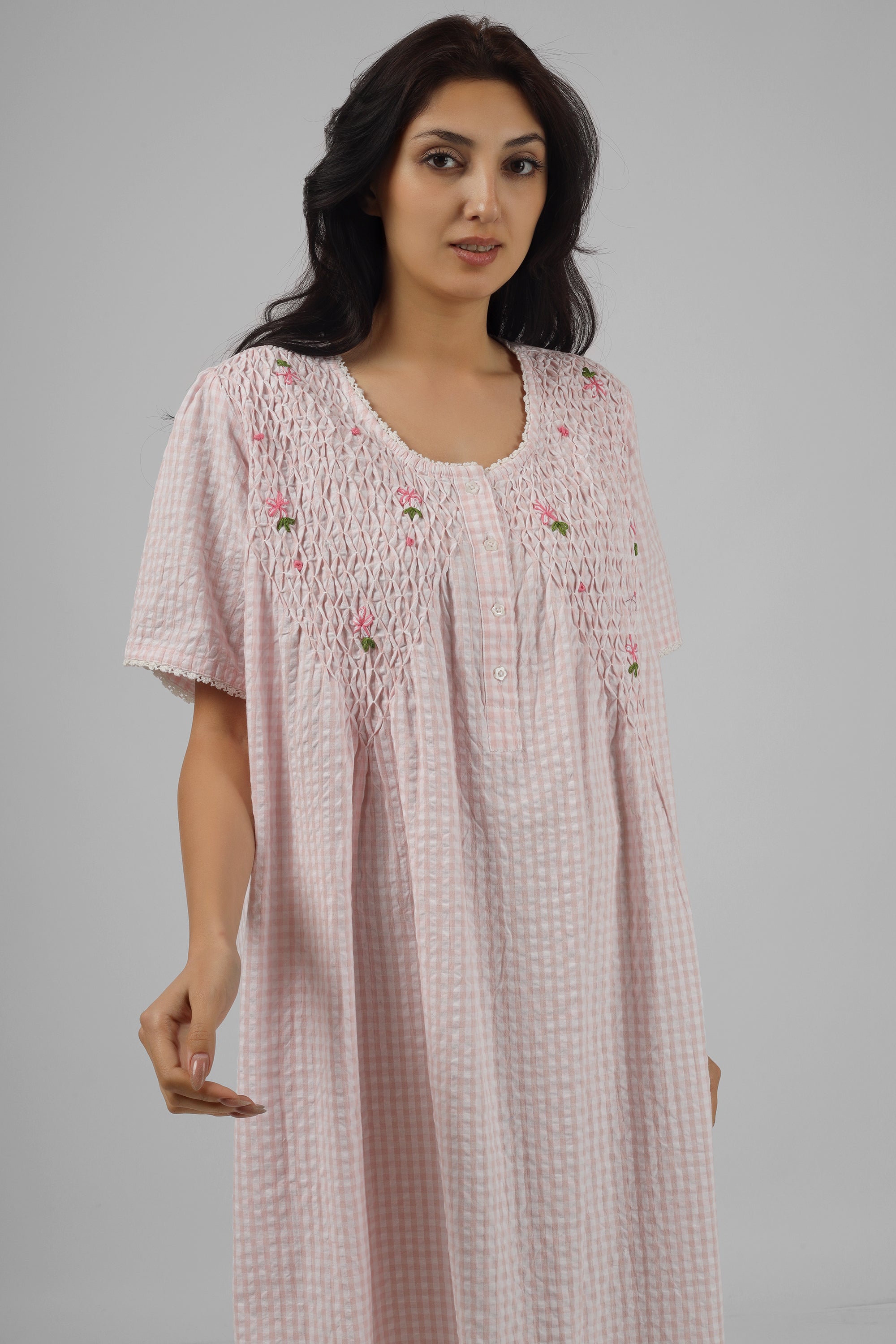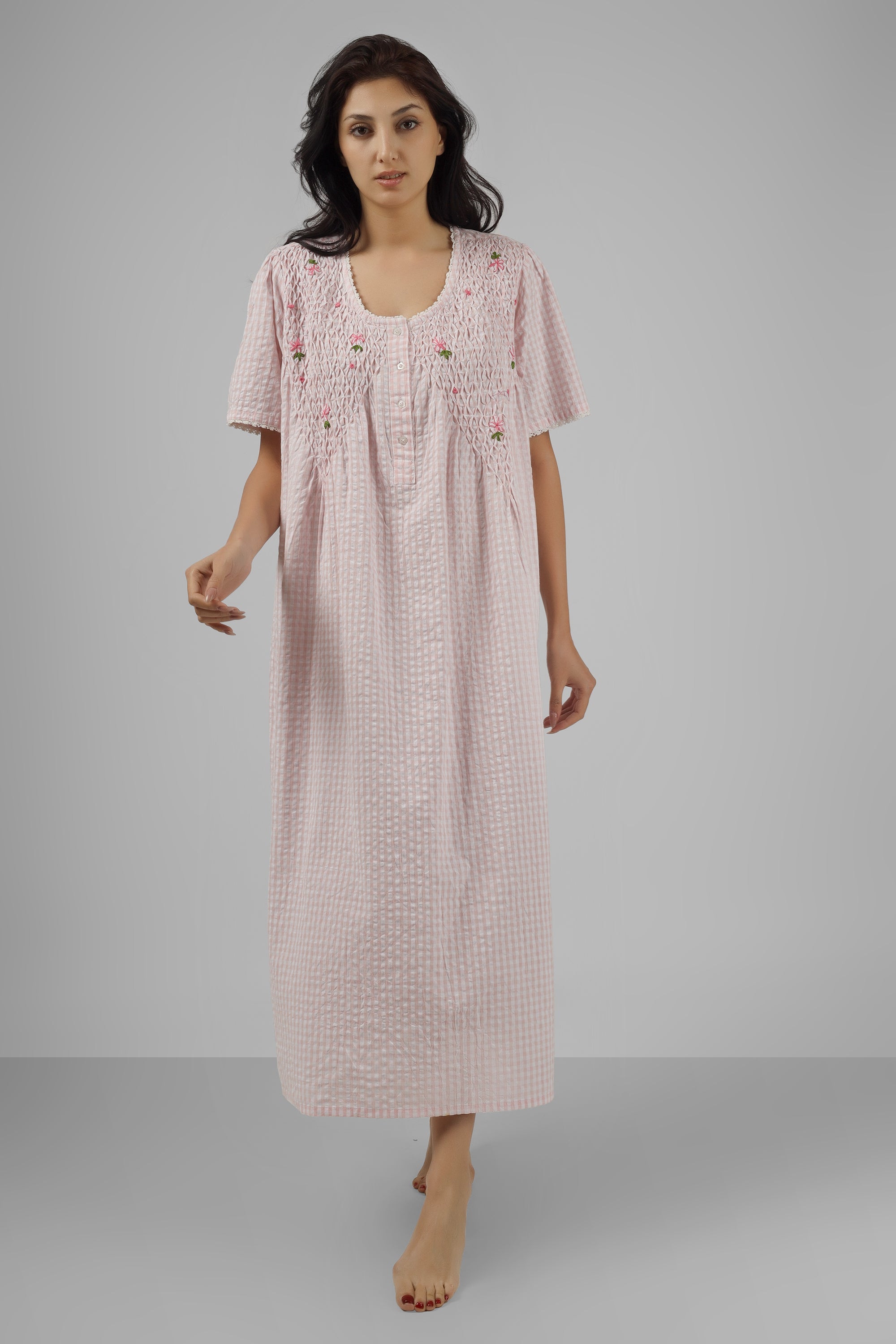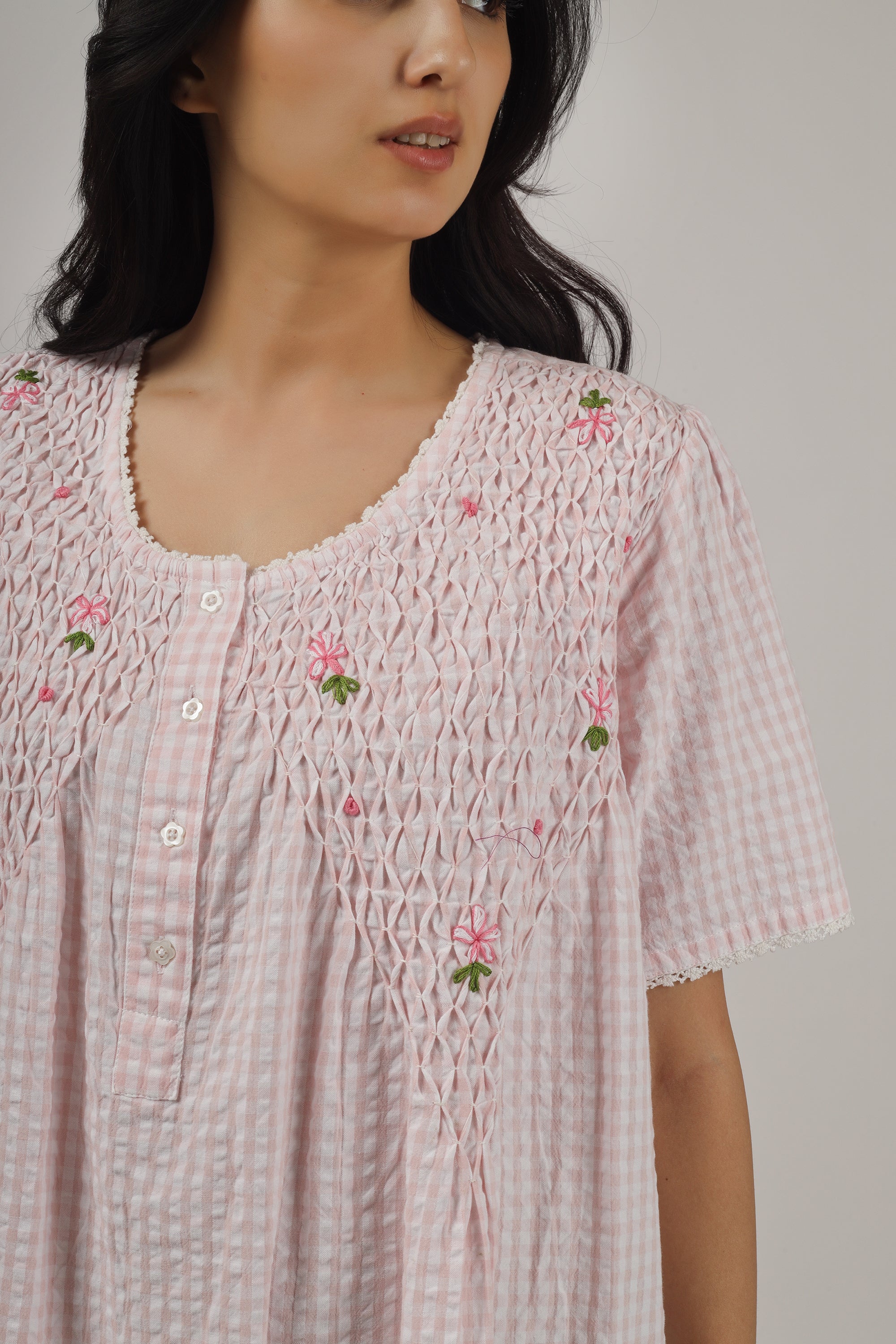 Agatha is a relaxed and unassuming combination of superior fabric with detailed craftsmanship. Smocking and embroidery done by our handwork queen, Anju ji, and her team. Made in India, with lots of love.